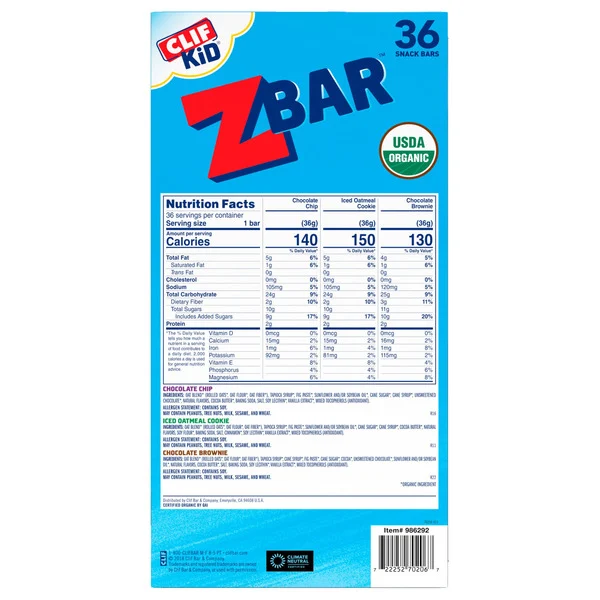 Clif Kid Organic ZBar, Variety Pack, 1.27 oz, 36-count