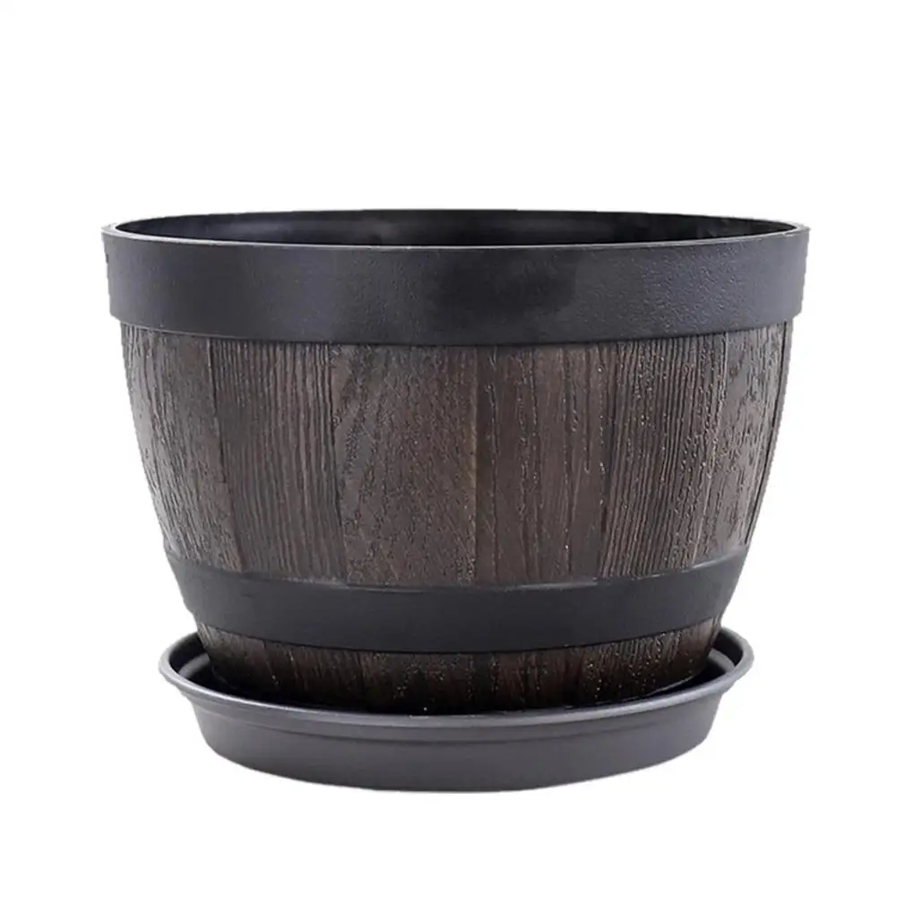 Simulation Wood Barrels 9 Inch Resin Flower Pot Vintage Style Bucket Shape Planter Home Decoration Outdoor Patio Farmhouse
